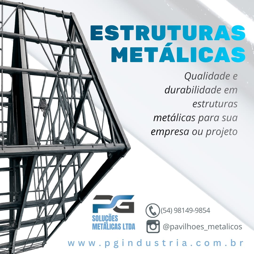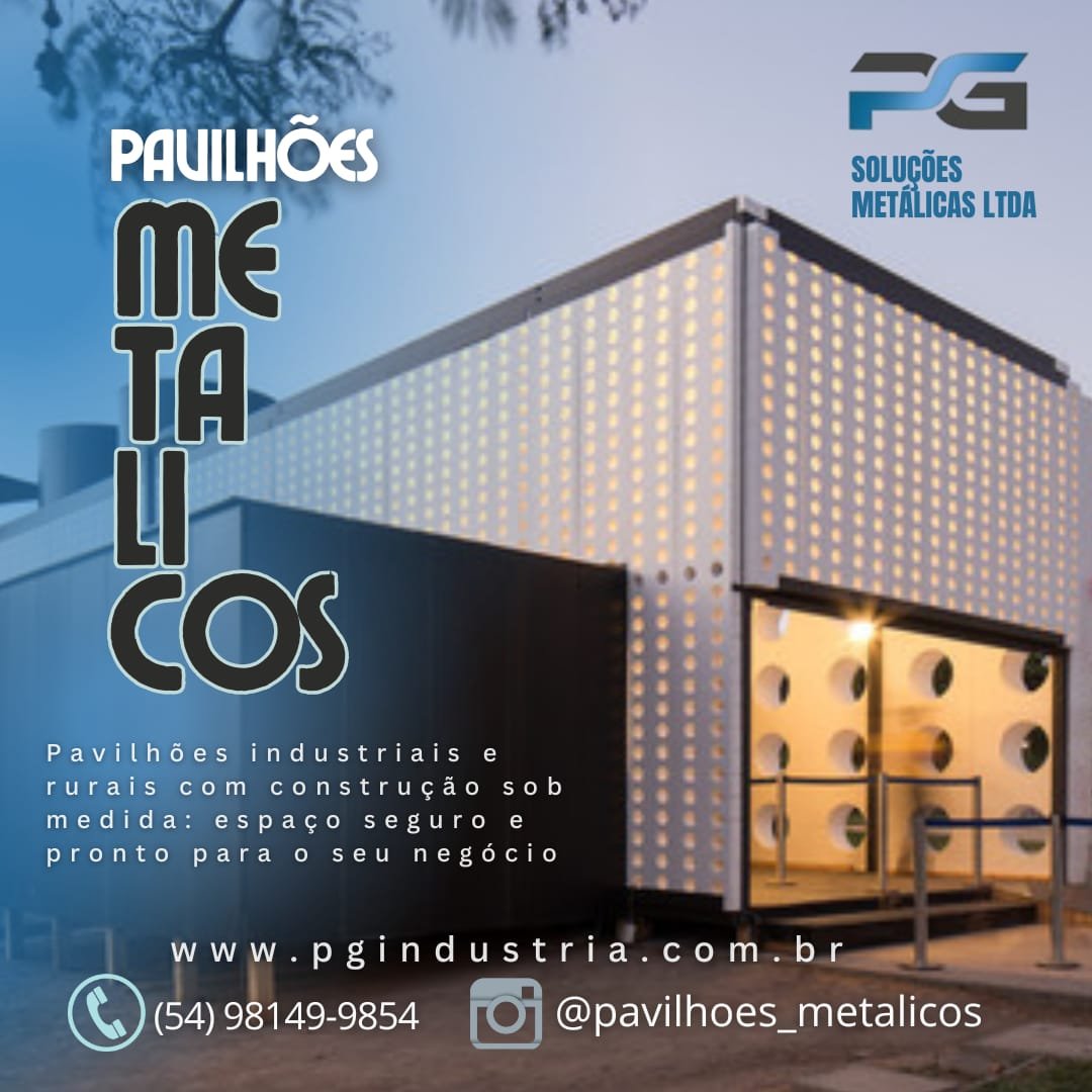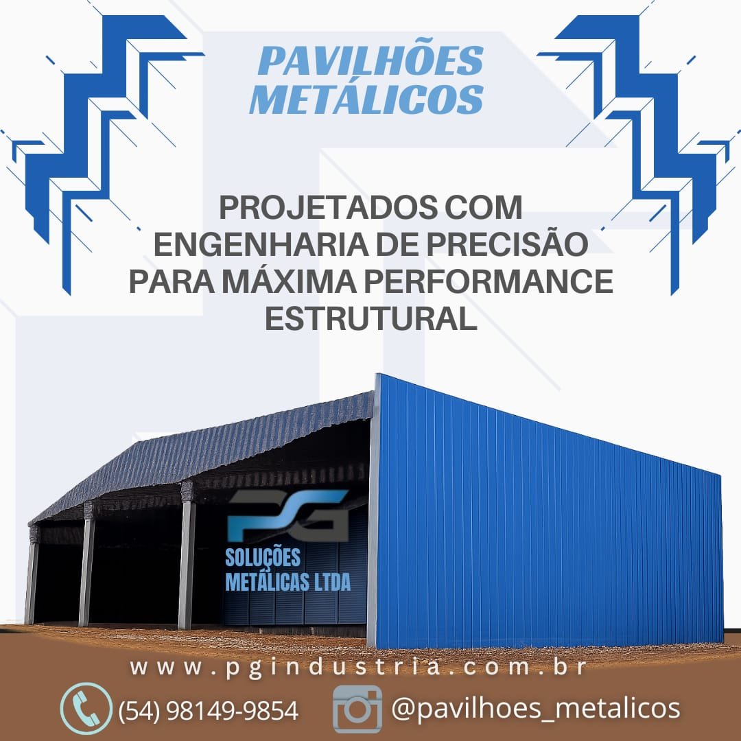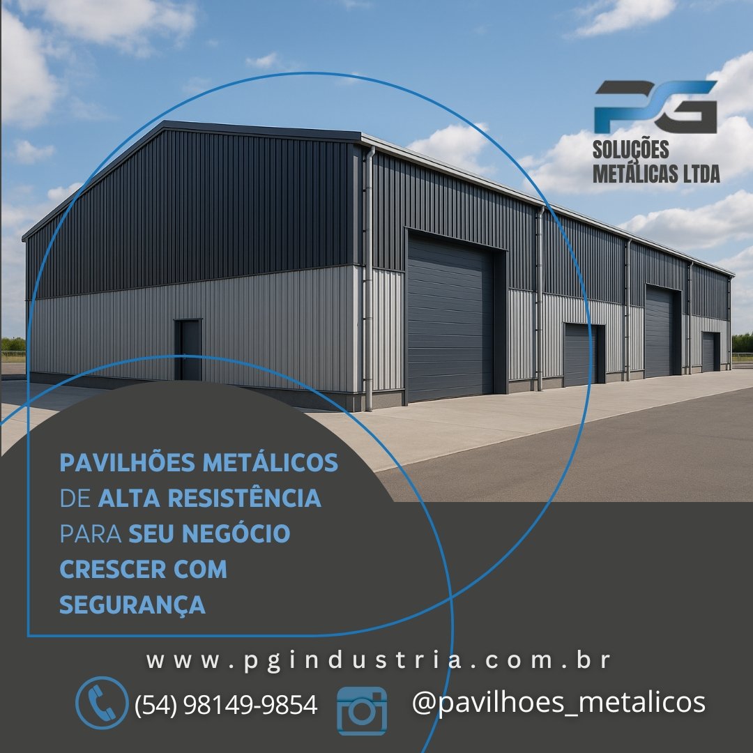 Empresa consolidada desde 2015 com marca registrada e reconhecida em todo território nacional pelo seu trabalho e respeito com os clientes e meio ambiente, Trabalhamos com fabricação e execução de soluções metálicas Industrial/ Residencial, Galpões Rurais, Pavilhões metálicos para indústria. Telhas zipadas IN Loco sem furação evitando goteiras Projetos Especiais, Chalés e cabanas metálicas. Artigos de Serralheria, Portões, Projetos especiais, Grades, Corrimões etc.Funilaria em geral, Reforma industrial, Reservatórios de água. Portões de enrolar, Pintura eletrostática garantindo maior proteção e vida útil do material. A PG Soluções Metálicas atua em Caxias do Sul e região com soluções completas em pavilhões metálicos industriais e comerciais