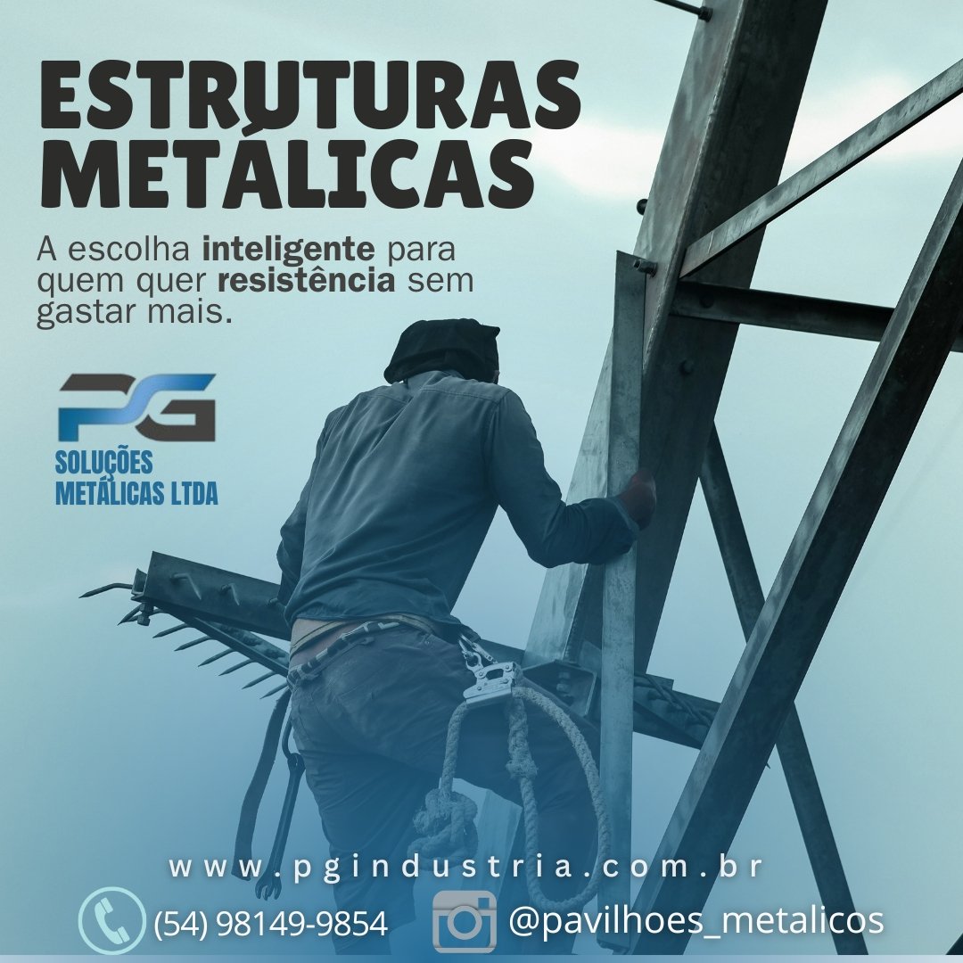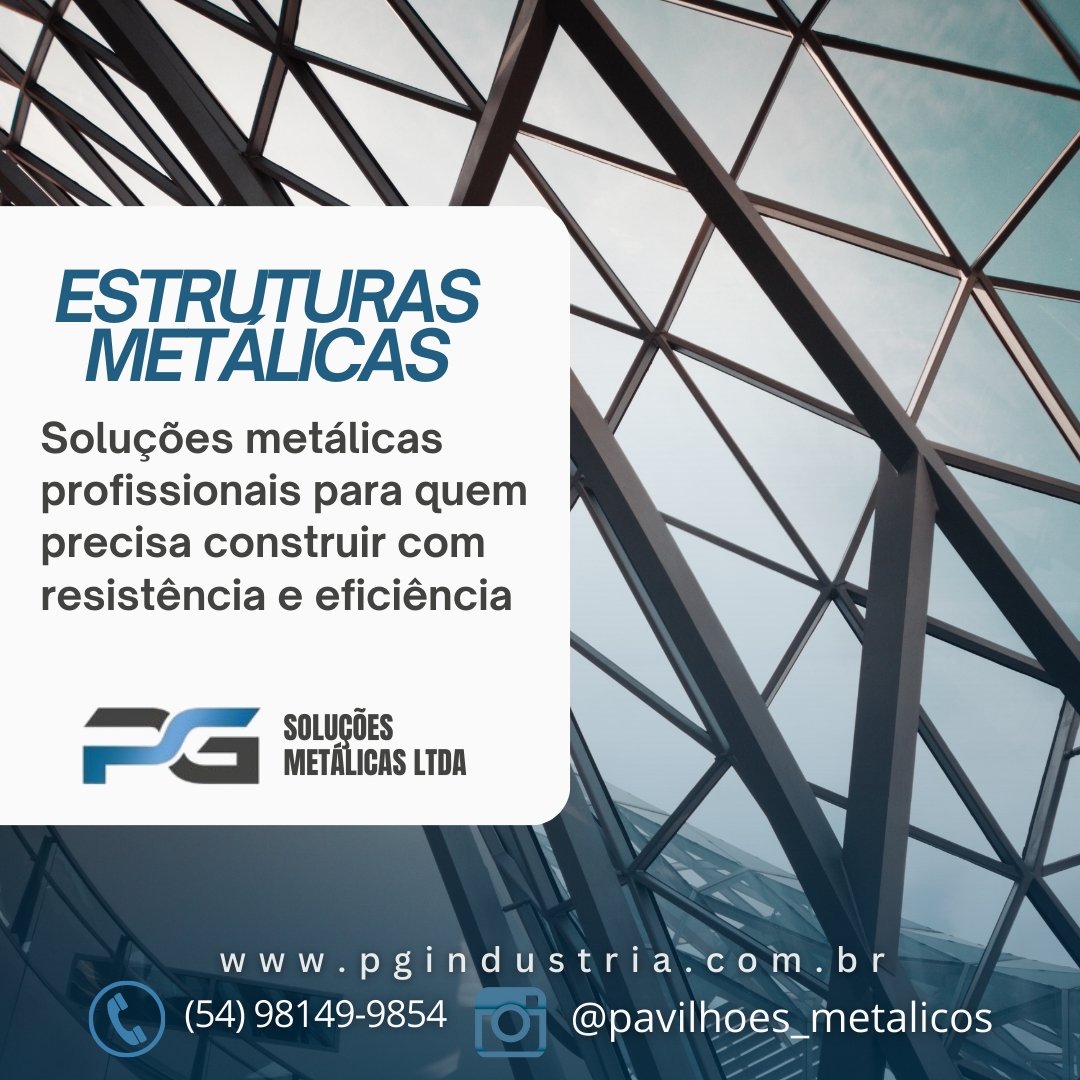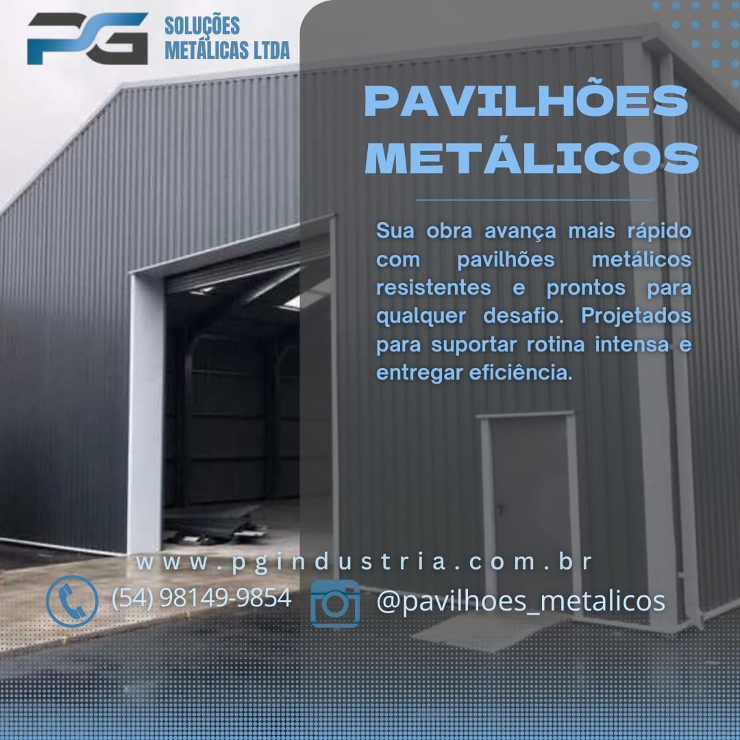 Empresa consolidada desde 2015 com marca registrada e reconhecida em todo território nacional pelo seu trabalho e respeito com os clientes e meio ambiente, Trabalhamos com fabricação e execução de soluções metálicas Industrial/ Residencial, Galpões Rurais, Pavilhões metálicos para indústria. Telhas zipadas IN Loco sem furação evitando goteiras Projetos Especiais, Chalés e cabanas metálicas. Artigos de Serralheria, Portões, Projetos especiais, Grades, Corrimões etc.Funilaria em geral, Reforma industrial, Reservatórios de água. Portões de enrolar, Pintura eletrostática garantindo maior proteção e vida útil do material. A PG Soluções Metálicas atua em Caxias do Sul e região com soluções completas em pavilhões metálicos industriais e comerciais