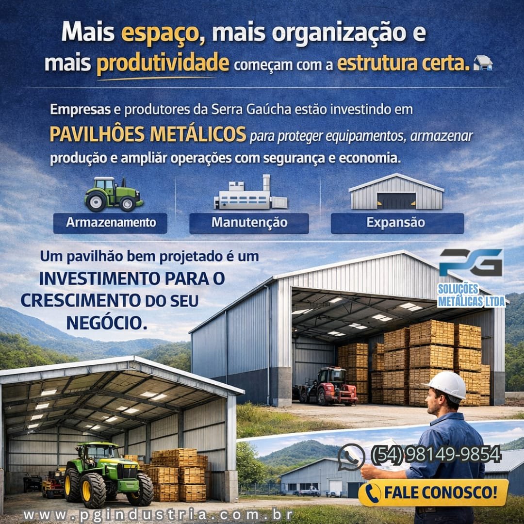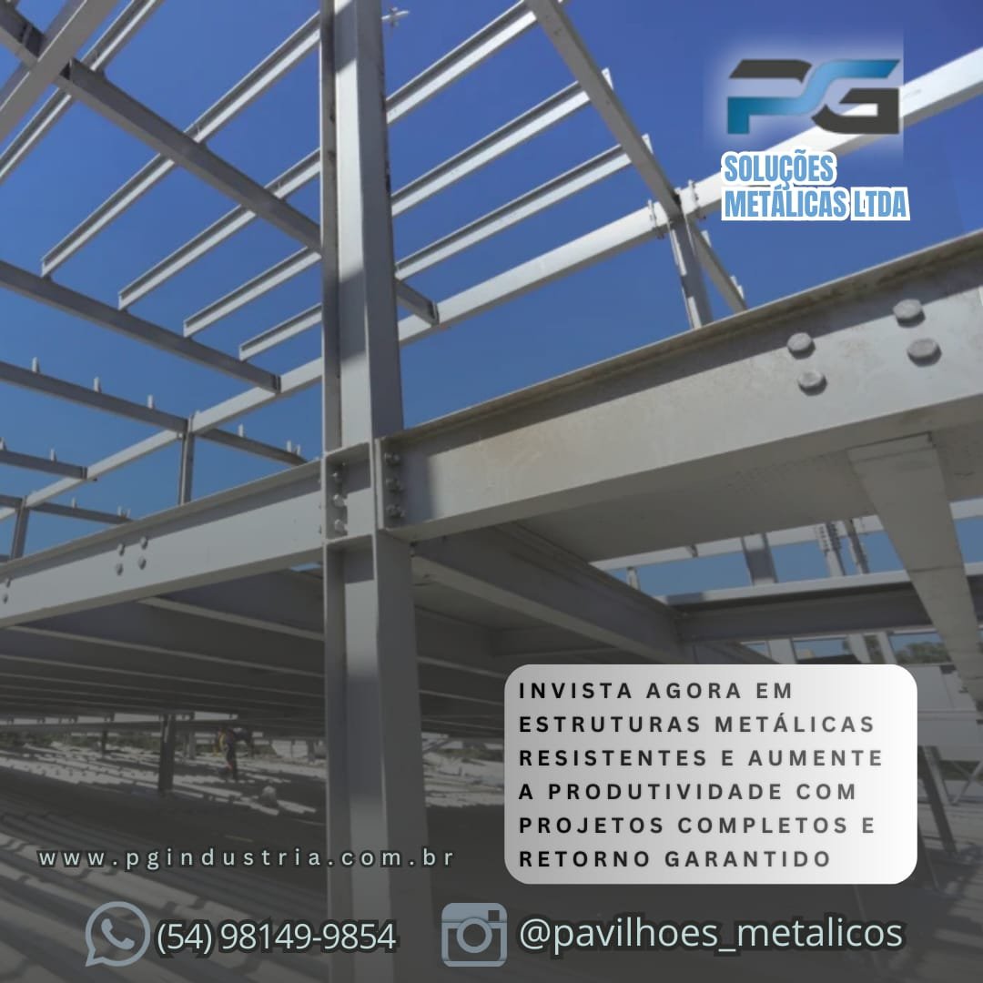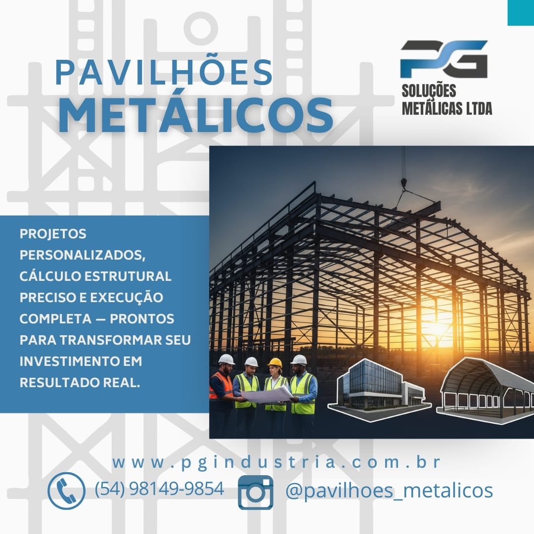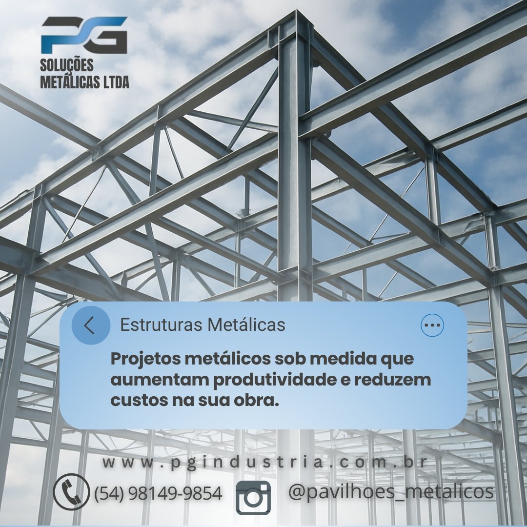 Empresa consolidada desde 2015 com marca registrada e reconhecida em todo território nacional pelo seu trabalho e respeito com os clientes e meio ambiente, Trabalhamos com fabricação e execução de soluções metálicas Industrial/ Residencial, Galpões Rurais, Pavilhões metálicos para indústria. Telhas zipadas IN Loco sem furação evitando goteiras Projetos Especiais, Chalés e cabanas metálicas. Artigos de Serralheria, Portões, Projetos especiais, Grades, Corrimões etc.Funilaria em geral, Reforma industrial, Reservatórios de água. Portões de enrolar, Pintura eletrostática garantindo maior proteção e vida útil do material. A PG Soluções Metálicas atua em Caxias do Sul e região com soluções completas em pavilhões metálicos industriais e comerciais